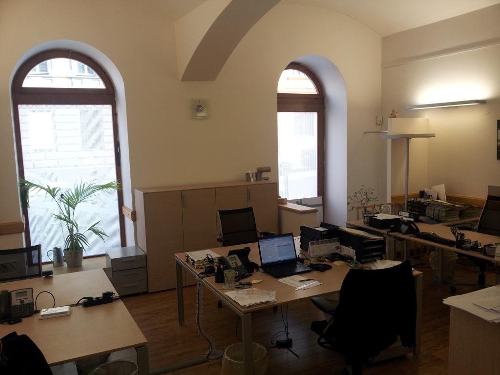 Pronájem obchodu - kanceláří v Praze 4, Mečislavova 7. Jedná se o 66m2 velký prostor po rekonstrukci se dvěma vstupy (jeden přímo z ulice a druhý zadní). Vytápění elektrickými přímotopy, bojler a podlahy tvoří převážně dlažba. Vybavená kuchyně, 2x WC. Internet je od O2. Cena 11.890,- Kč (nezahrnuje poplatky za elektřinu, vodu). Pronájem nabízíme i s možností ponechání nábytku a vybavení (viz na fotografiích) za 1500Kč, t.j. celkem 13.390,- Kč/měs.